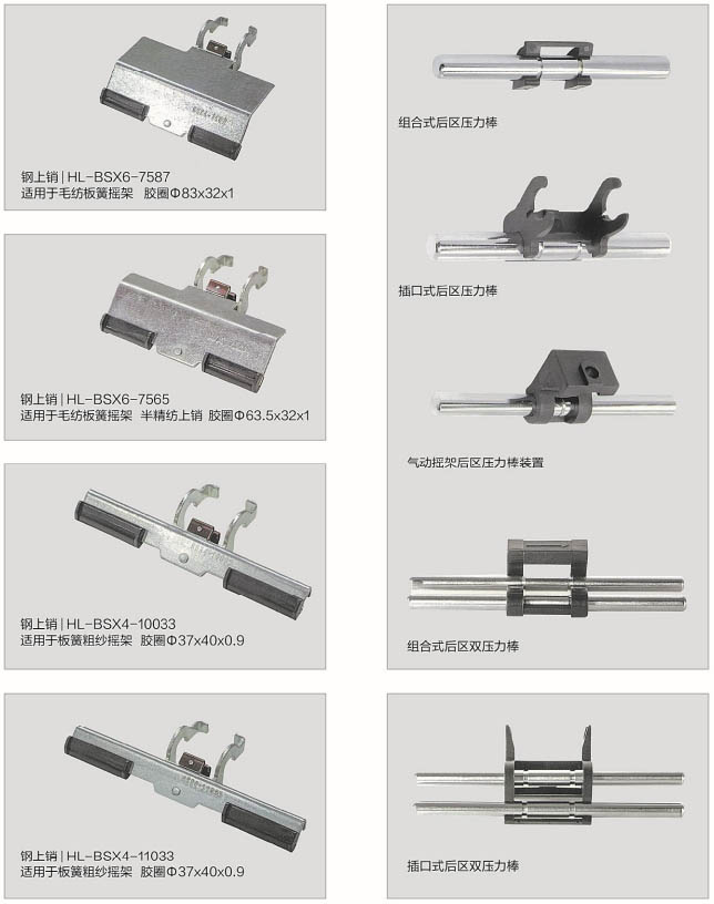 6839D上銷是在傳統上銷的基礎上做了進一步改進優化的一種新產品。打破了傳統上銷上車反復調試的局限性,經大量試驗證明,其順暢的運行狀態和極強的穩定性,更能有效地在牽伸區內控制纖維的運動速度明顯的減少牽伸的意外波動。6839D上銷在紡純棉紗過程中,紗線條干CV值改善特別明顯,由于其獨特的設計和極強的穩定性,對錠差cvb的改善更顯著。由于其極強的適紡性,深受紡紗企業的青睞。本產品適用于細紗機平型牽伸彈簧搖架。